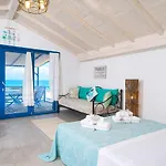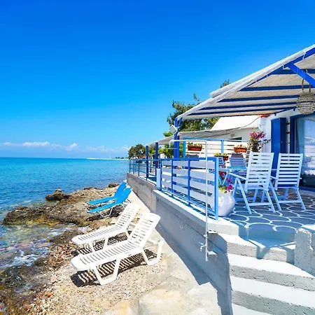Die am Strand Glaros Bungalow verfügt über Parkplätze und eine Terrasse mit Aussicht aufs Meer.